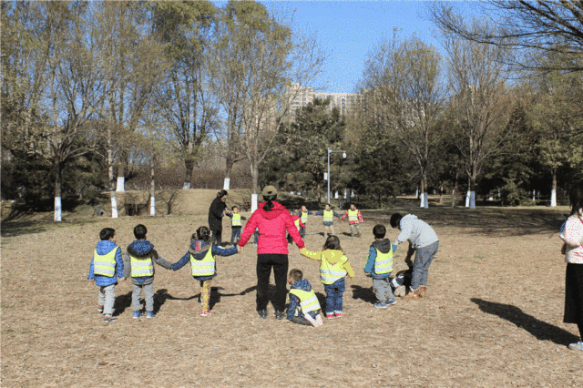 某国际园的小朋友排队参观、围圈儿吃饭,没有共享自然的活动,12点钟就回园了,本来我们的小朋友想和他们一起玩儿呢………^^